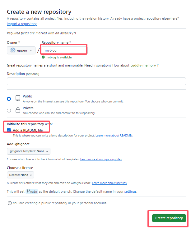 仓库名称格式 不用写 用户名.github.io 直接写一个短名称 例如blog